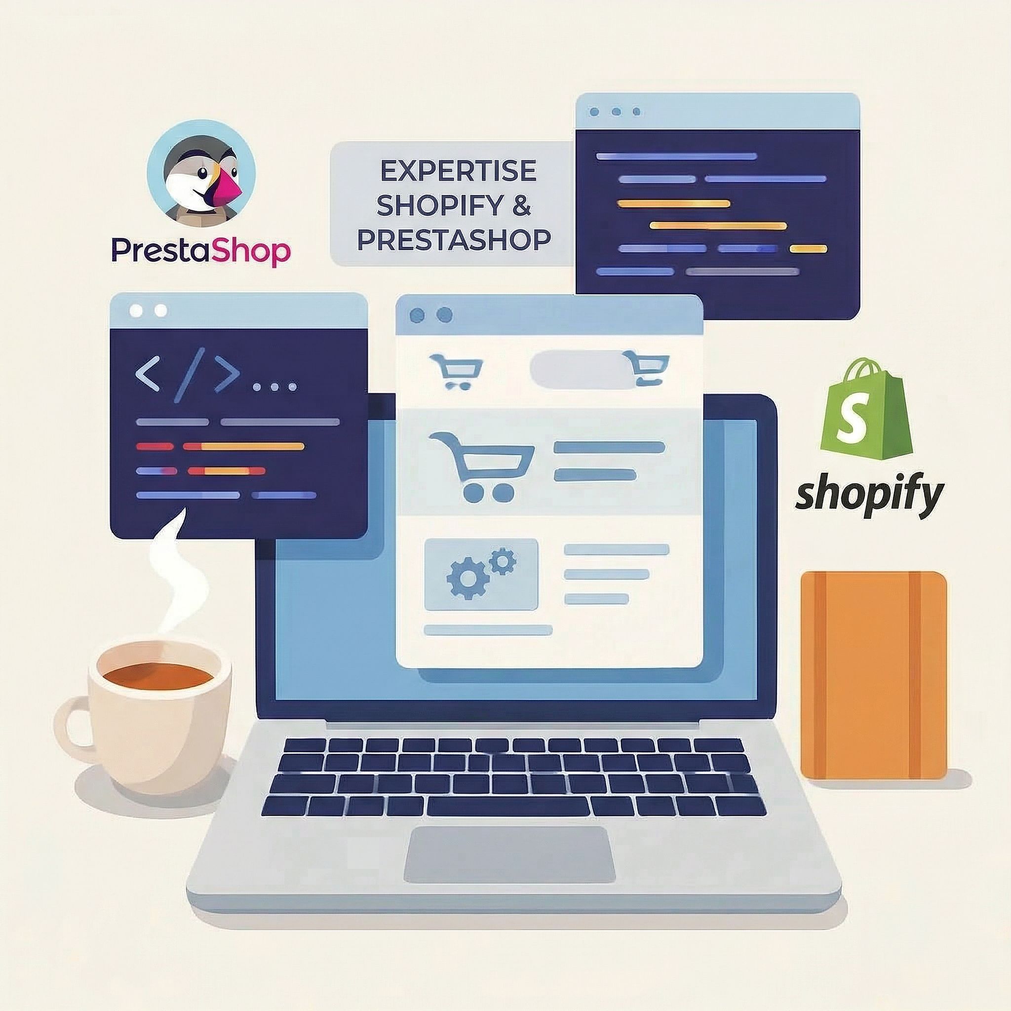 Développeur e-commerce freelance, basé dans le Sud de la France. Expert PrestaShop depuis 2011, désormais aussi sur Shopify. Création de boutiques, migrations, développement de modules et d’apps, maintenance. Deux écosystèmes, une seule expertise.